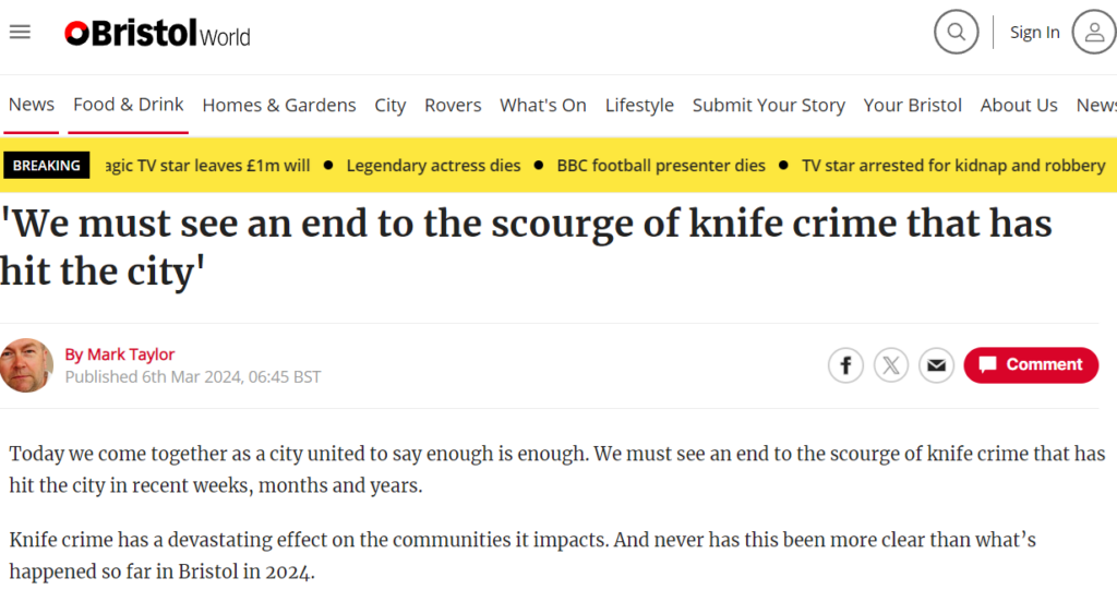 BristolLive noted that they had reported on an incident involving a knife on average more than once a week, with many of these incidents ending seriously.