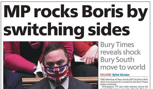 The Bury Times broke the news of a local MP’s defection from the Conservative Party to Labour amid speculation about Boris Johnson’s future as Prime Minister. The paper broke the story of Bury South MP Christian Wakeford’s online minutes ahead...
